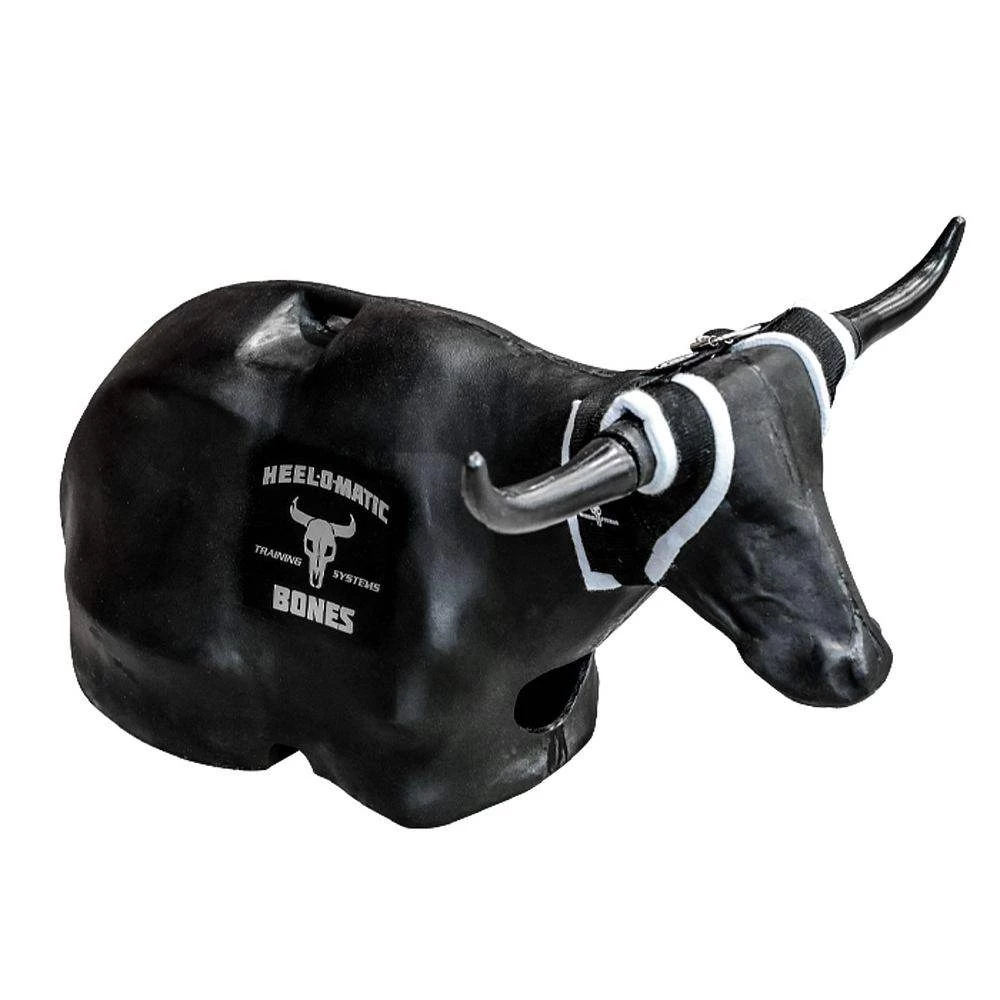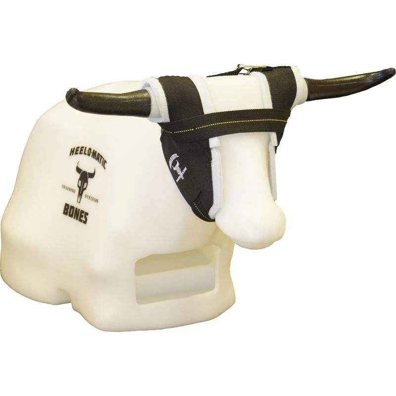 The Heel-O-Matic Bones Heading Dummy is a great option for both PRCA pros and novice ropers alike. Crafted from durable, molded plastic, the Bones is designed to create a realistic heading dummy that won’t tip, slip, or slide. It comes with a real horn wrap and sets of 19″, 28″ and 33″ horns that can be customized to match local livestock. Additionally, for calf and breakaway ropers, the horns can be taken off to provide a 14″ spread. The built-in handle and 45 pound weight make the Bones easy to transport. To further customize your practice sessions, 5/16″ bolts can be added to the pre-drilled spots in the base to raise, lower, or tip the head.