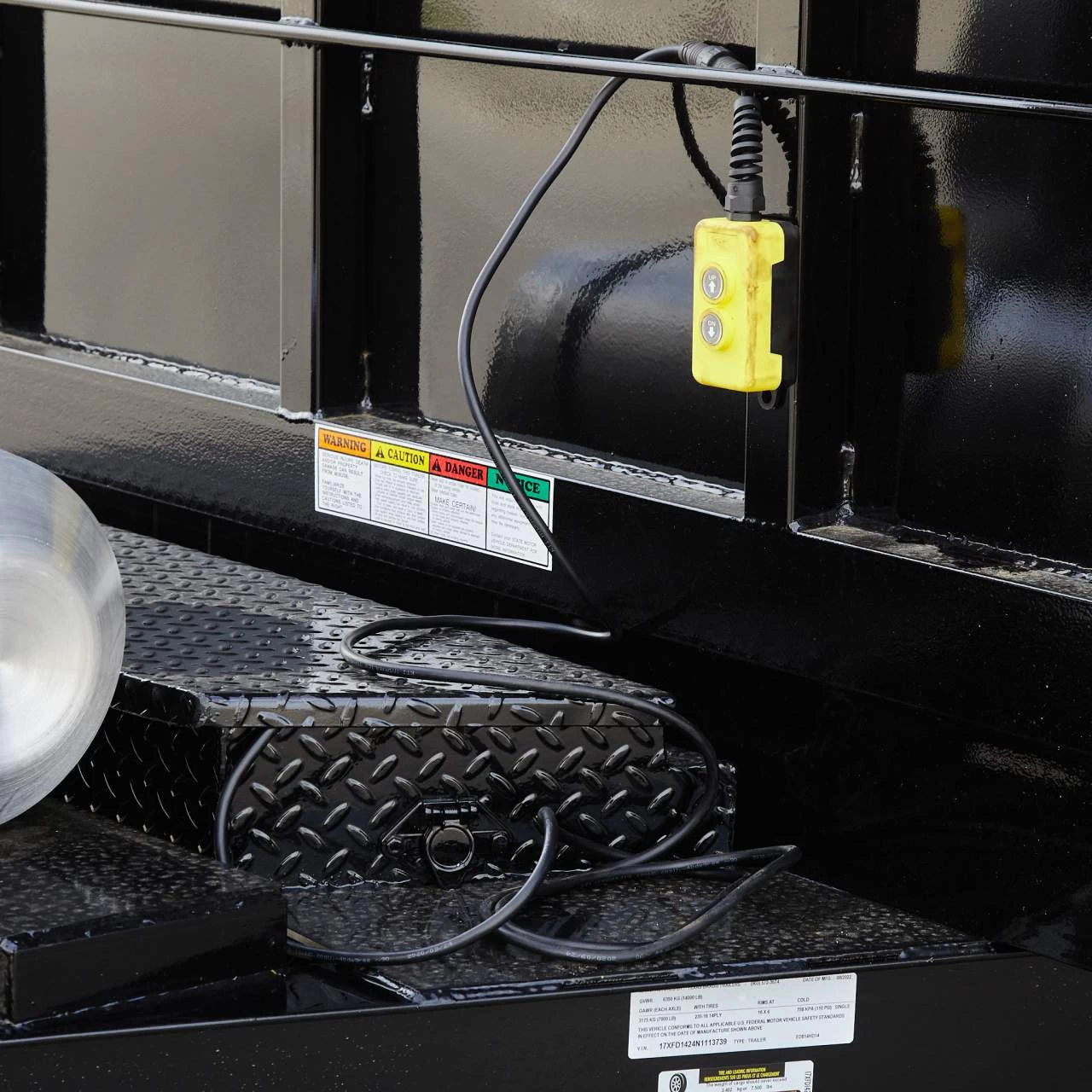 - The back gate opens and closes with dump trailer locking doors