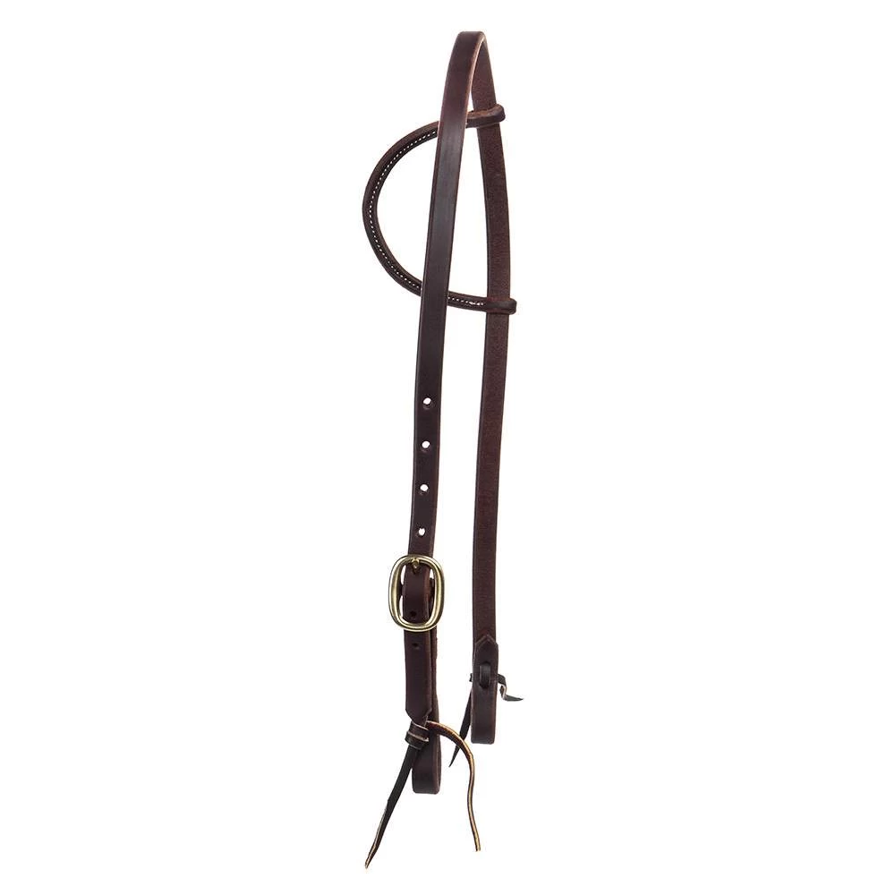 NRS Single buckle, slip ear headstall. Amish Made, 5/8″ Oiled Harness Leather with Stainless Steel Hardware.