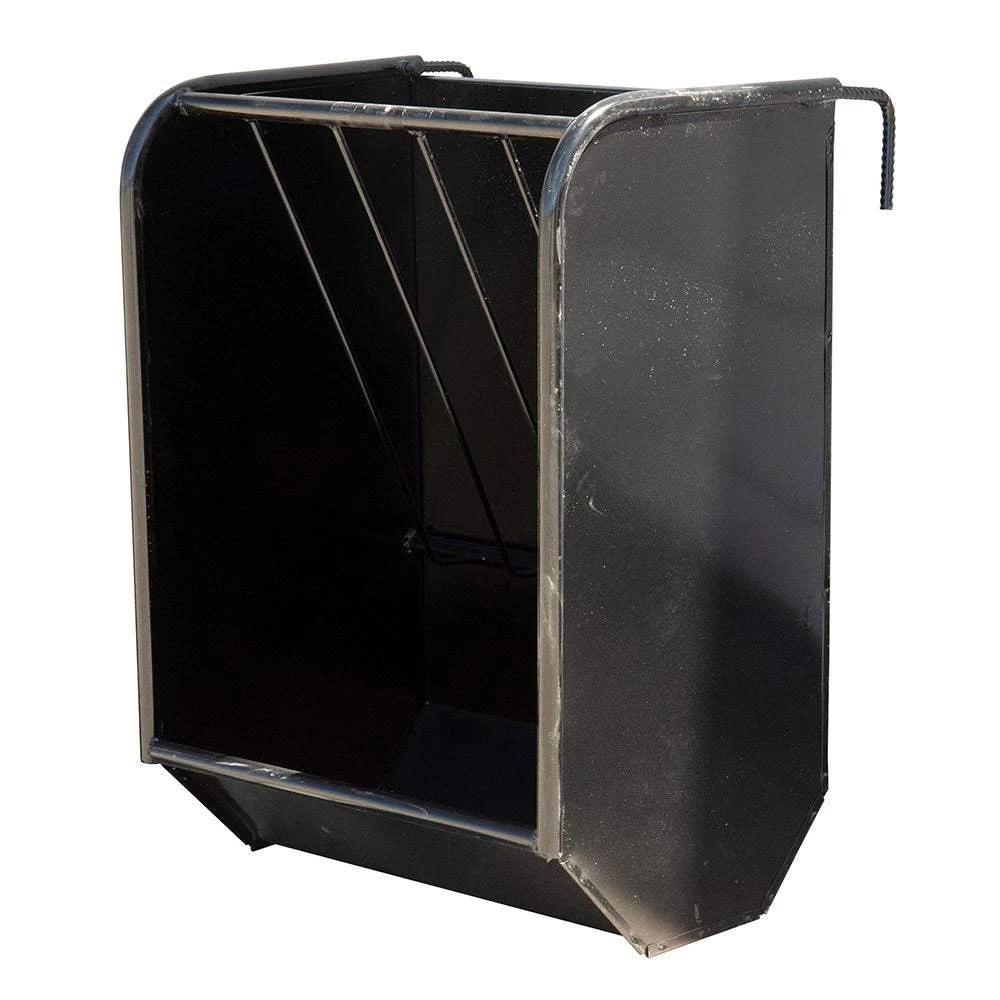 - Black hay and grain feeder for use in barns, outdoor paddocks and pastures