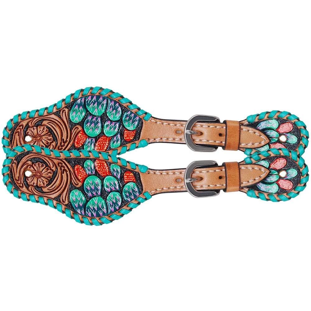 - Stainless Steel Hardware Turquoise Whipstitch Hand Painted Floral Swirl Hand Tooled Design to compliment the painted cactus