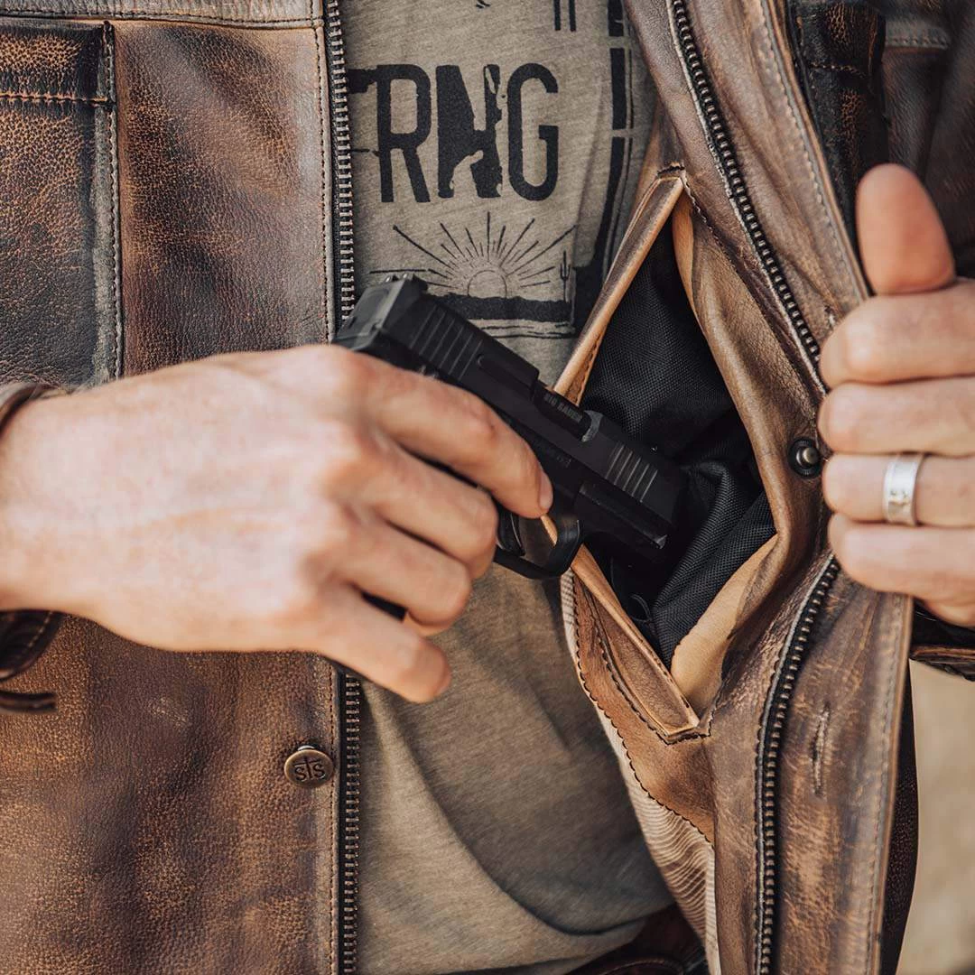 The soft, distressed genuine leather gives the Jesse James jacket a vintage rugged look.